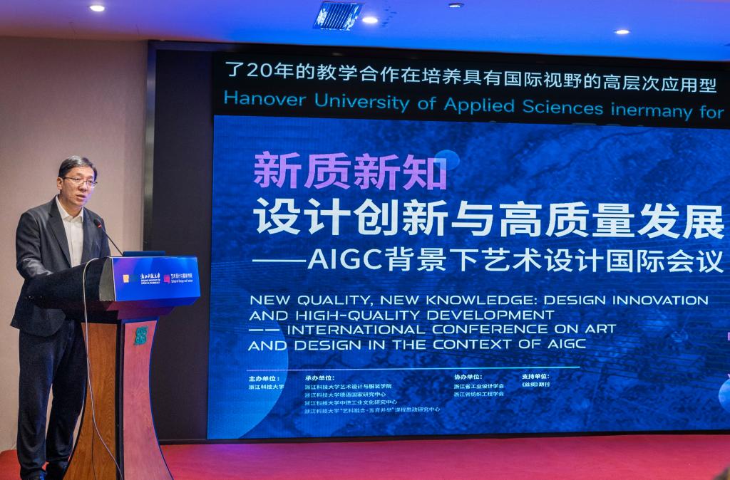 围绕会议主题,美国弗吉尼亚理工大学建筑、艺术与设计学院院长Tsai Lu Liu以“面向非设计专业学生的设计思维教学”为题,分析了近年来AI技术的发展对非设计专业学生开展设计活动的赋能作用。Mind Makers联合创始人兼学术总监Ola Handford以“人机协作共创美好未来”为主题,分享了观点。她认为要采用“AI+思维”模式,将AI视为思维伙伴和沟通伙伴,并将其充分融入日常工作。台北科技大学曾俊儒教授以“医疗设计:为中风患者打造智能产品与服务”为题,分享了团队开展医学与设计跨域研究,推导创新医疗保健的智能产品与服务开发的作法。上海艺凯设计有限公司(GK上海)董事总经理、GK设计集团国际事业推进负责人长田喜晃作了题为“设计的本质价值”的分享,回顾GK设计集团72年的设计历史,认为设计使命在于捕捉事物的本质属性,创造人类生活的安全和便利,激活社会资源推动设计转型。德国柏林媒体设计学院Christian Malterer教授以“人工智能时代的设计文化”为题,分享了德国柏林媒体设计学院基于人工智能的人才培养体系。国际丝绸联盟秘书长、《丝绸》杂志社社长李启正以“丝绸之美 美美与共——《丝绸》期刊的设计转型之路”为题,介绍了丝绸期刊将科技与艺术结合,利用AI工具融入期刊相关工作,在产业界和学术界得到了高度认可。东华大学冯信群教授作题为“AI时代的设计教育与新质生产力背景下的人才培养”的报告,强调在AIGC时代背景下,科技、人才、创新需要深度融合,让艺术感知生活日常,用智慧激发新质力量。浙江大学孙守迁教授在题为“人工智能赋能数字文旅新场景与新业态”的报告中指出,AIGC本质上是一种AI赋能技术,能通过其生成能力泛服务于各类内容的相关场景及生产者,AIGC+AR/VR的深度结合,也必然会赋能数字文旅新场景与新业态。