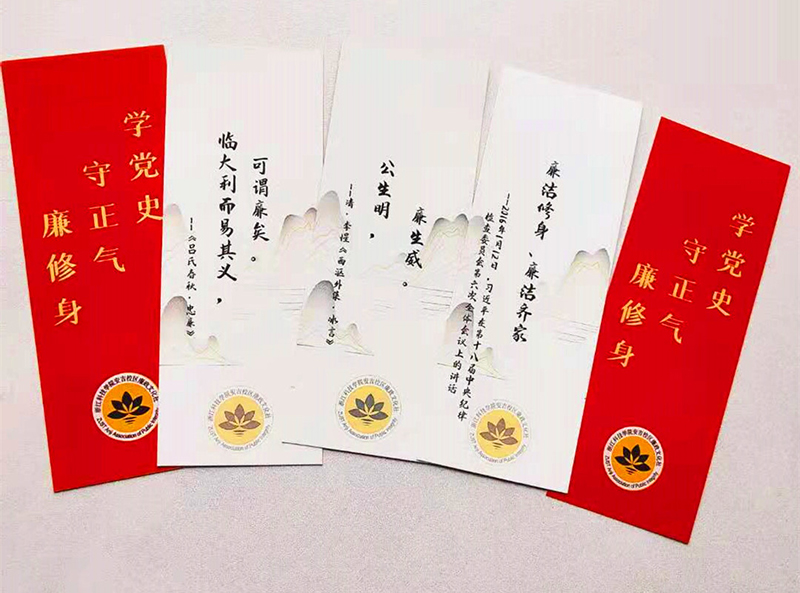 527日,安吉校区党总支向校区各部门、单位的党员教师和重岗重责教职工赠送定制的廉洁书签,进一步加强廉政提醒和警示教育,营造校区风清气正的政治生态,推进“清廉校区”建设。