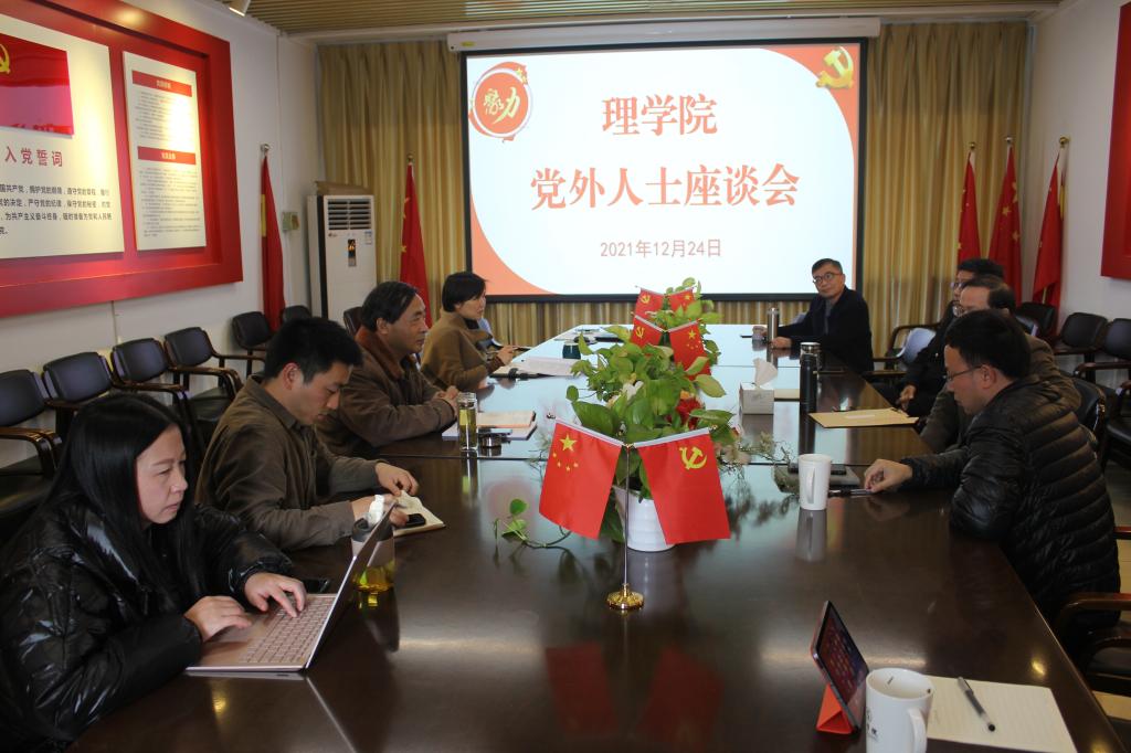 为进一步加强学院与党外人士的沟通交流,进一步凝聚人心、汇聚力量、形成合力,12月24日,理学院召开党外人士座谈会。理学院党政主要领导、民主党派与无党派人士代表以及办公室主任出席座谈会。