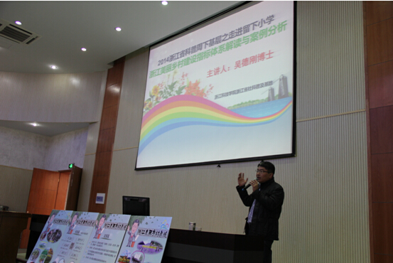 要让才十来岁的小孩子们明白什么是“浙江美丽乡村建设指标体系”可真不是一件容易的事,可吴博士结合漫画图片、视频还有展板,不仅让小朋友们明白了我们浙江“美丽乡村”建设政策和标准,还使生活在城市的小朋友们个个都恨不得马上跟着吴博士去游历浙江的美丽乡村。当互动环节小朋友们提问有哪些最好玩最有意义的美丽乡村时,吴博士还特别推荐了浙北的安吉、浙南的永嘉、浙西的江山和浙东象山以及我们杭州桐庐的深澳,这些县市的美丽乡村建设让吴博士赞不绝口。