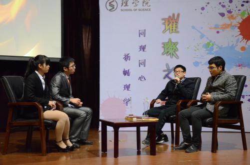 会上,陶祥兴发表了热情洋溢地致辞。他首先对获奖个人和集体表示热烈的祝贺,并强调学院会始终将教书育人放在首要位置,致力于培养厚基础、强应用、高素质,具有国际视野的优秀人才,不断给予理学学子众多政策支持和精神鼓励。 在现场响起的热烈掌声和欢呼声中,主持人上台宣读了2014年 “理学·璀璨之星”十人获奖名单:周婷婷、王凯宇、黄立媛、赵梦倩、张晟畅、陈冠维、张东,理学院12届优秀创业校友、辣妈汇电子商务有限公司总经理刘晖、理学院10届优秀校友、浙江工业大学理学院教师卢忠以及来自Burundi的留学生Any Arlene Niyubahwe。他们或学习卓越、事业有成,或热心志愿、才华横溢,正是他们,用感动的火光照耀今日,温暖了理学师生,如同一颗颗璀璨之星,闪烁星空。精彩的访谈与硕硕箴言让我们见证了追梦人难忘的寻梦之旅。十佳示范寝室为大家展示了各具特色的寝室和寝室主人的风采,也让现场众多学子感概不已,宿舍也可以打理的如此漂亮、整洁。十佳中小和山的“老生们”风采依旧,彰显个性;安吉的新生们也新颖夺目,活力四射。希望更多的同学开展寝室文化建设,打造良好的寝室学习、生活氛围。