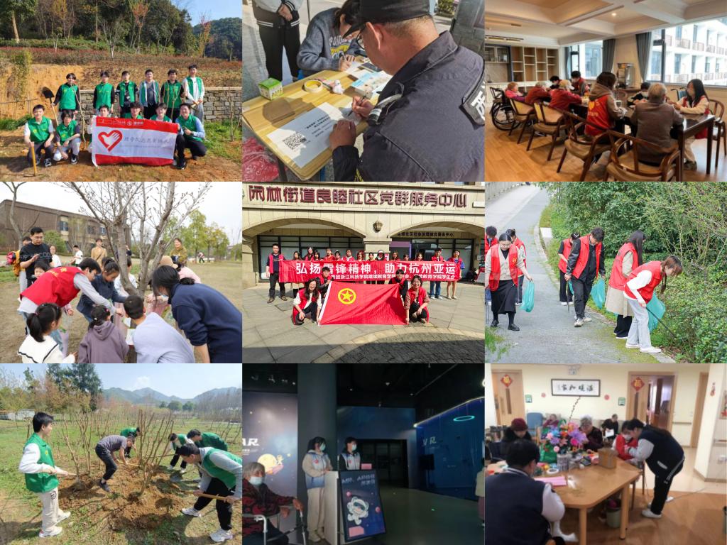 大学生志愿者团队纷纷走出校园,用实际行动服务社会。电气学院志愿者在中国动漫博物馆负责AR体验帮助及引导游客等工作;建工学院与电气学院志愿者前往2家养老院,进行爱心陪伴志愿活动,为老人带去了欢声笑语;环资学院志愿者开展了“学雷峰——藏在明信片里的希望”主题志愿活动,寄语信笺卡片,寄情留守儿童;理学院志愿者携手小和山社区在小和山新苑公园开展了植树活动,并推广支付宝“浙江科技学院公益林”项目;继教学院组织了“弘扬雷锋精神 守护青山喜迎亚运”志愿活动,植树浇水除杂草,清洁扫净游步道,为美丽杭州建设、“迎亚运”城市环境整治贡献志愿力量;国际学院组织来华留学生参与到志愿活动中,致力于幼儿园社区支教、景区秩序维护,为中外交流搭建了爱心桥梁。(团委 学生记者 何沛艺)