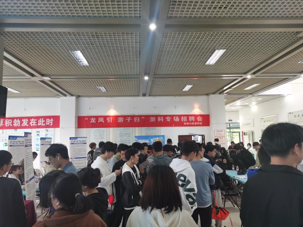 4月13日,环资学院“龙凤引 游子归”浙科专场企业招聘会举行,招聘会共邀请了14家高质量企业,提供实习就业岗位72个,需求人数400余人,涉及机能、电气、信息、生化、经管、环资等多个学院。