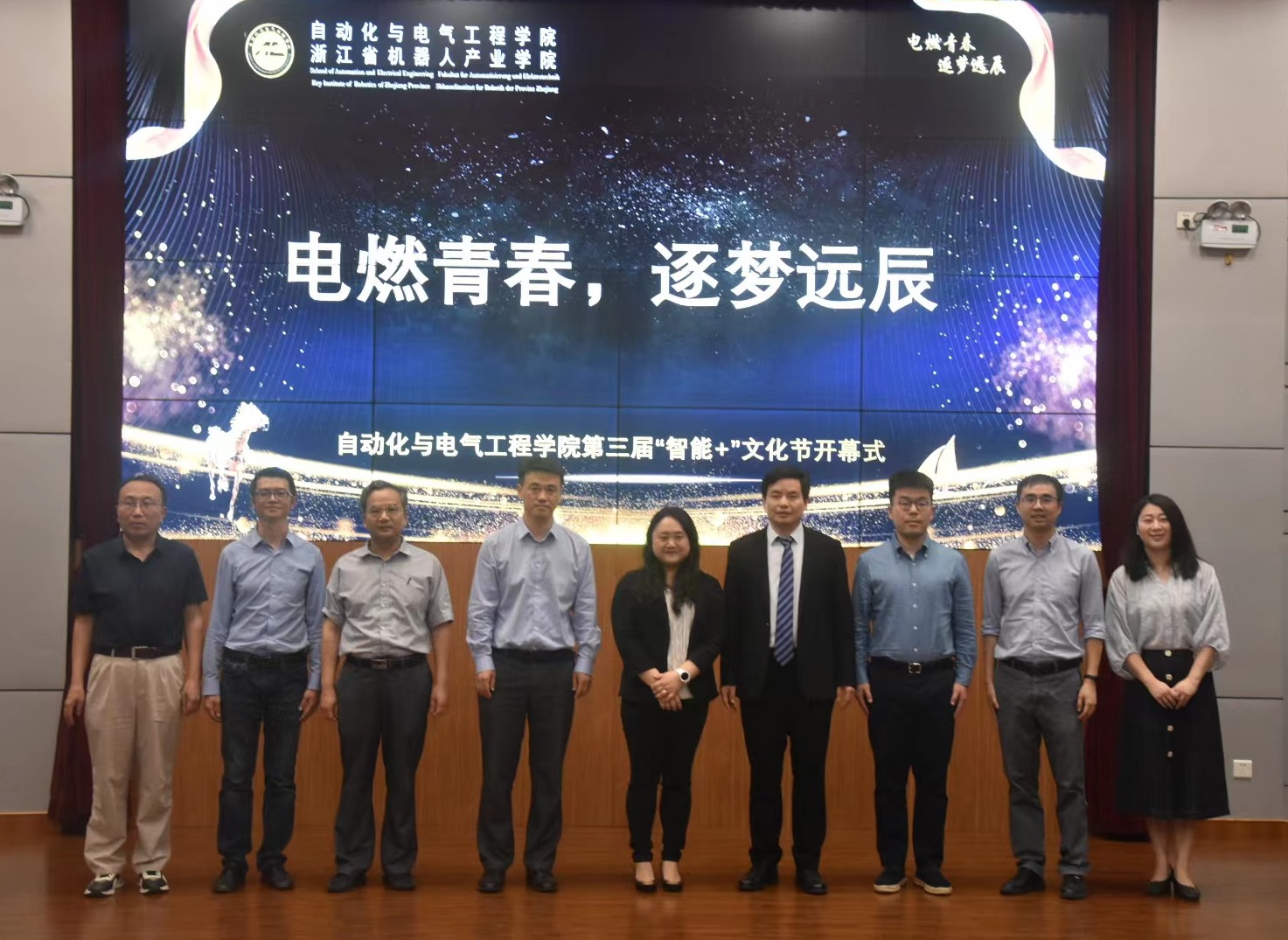 5月19日,“电燃青春,筑梦远辰”电气学院第三届“智能+”文化节开幕。校党委副书记冯军出席开幕式并致辞。之江实验室研究专家李驰野教授、浙江国自机器人技术股份有限公司人力资源总监余晓峰和学校相关职能部门、电气学院领导班子及师生代表参加活动。