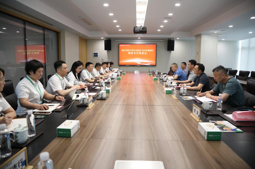 安吉农商银行负责人详细介绍安吉农商银行经营概况、发展理念、企业文化、人才培养模式以及近几年取得经营成效。安吉校区相关负责人详细介绍开元集团网站安吉校区发展定位、办学理念、办学特色等。双方围绕“如何进一步加强校银合作”主题展开深入交流与探讨。