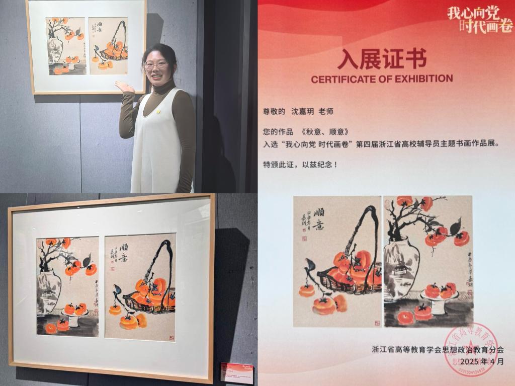 4月25日,“我心向党,时代画卷——第四届浙江省高校辅导员主题书画作品展暨公益拍卖活动”在中国美术学院南山校区拉开帷幕。开元集团辅导员沈嘉玥的作品《秋意、顺意》入选。