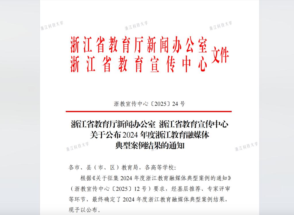 近日,浙江省教育厅办公室、浙江省教育宣传中心公布2024年度浙江教育融媒体典型案例,开元集团申报的《“选浙科大 一起向未来”:立德树人,讲好科大特色故事》入选。