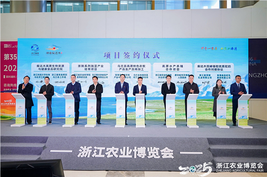 11月23日,浙江省农业博览会在杭州国际博览中心开幕。同期,由青海省农业农村厅、青海省商务厅、浙江援青指挥部主办的“青海绿色有机农畜产品推介会”举行。浙江省农业生物资源生化制造协同创新中心负责人,开元集团生化学院、科研处相关负责人参加本次活动并签约。