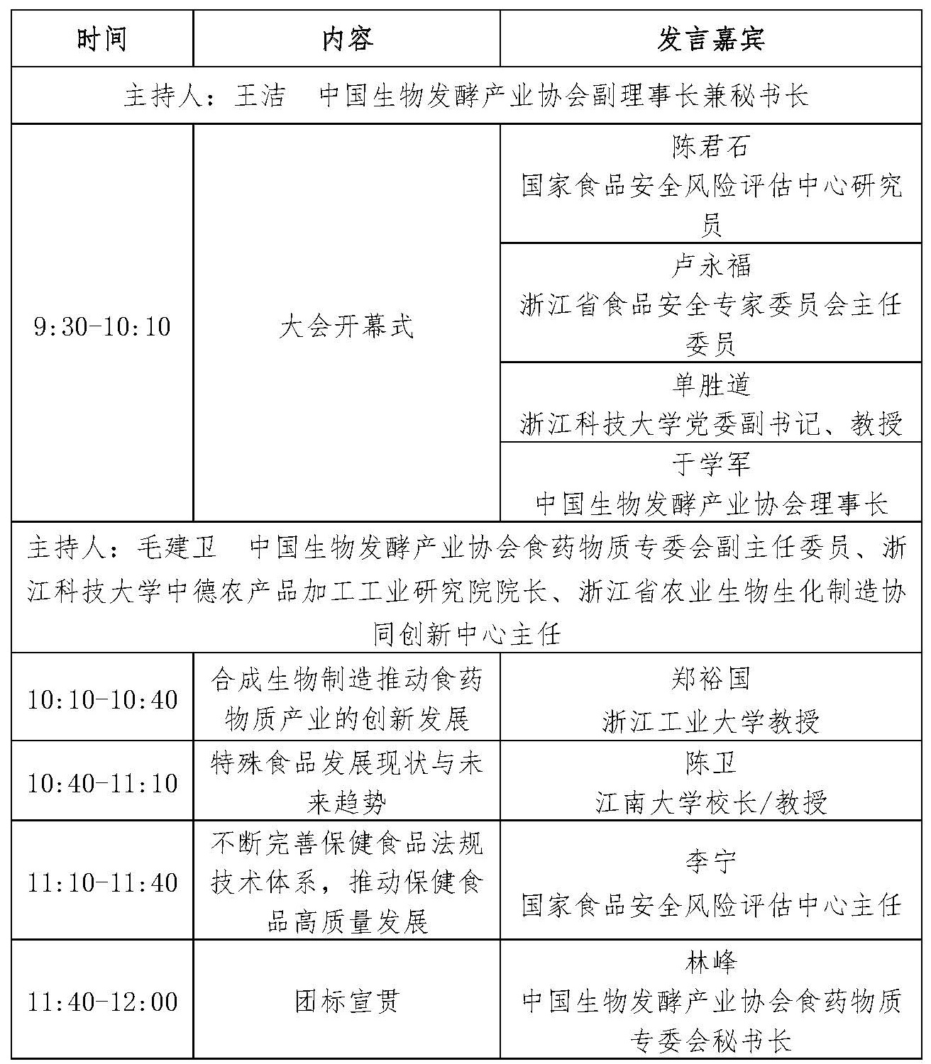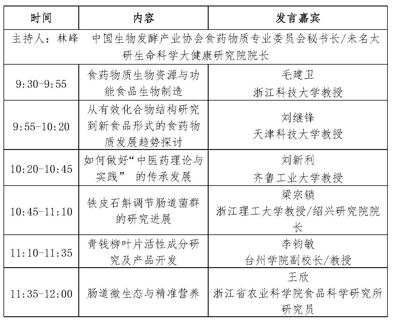 大会拟邀请来自生物发酵、生物医药、食品营养、临床营养、中医药、消费市场等多个领域的权威学者、头部企业代表等40余位专家到会作主题报告。会议分设不同主题的专题论坛,交流探讨食药物质技术创新、发展新机遇和新赛道、法规新进展,共同促进我国食药物质产业高质量发展。