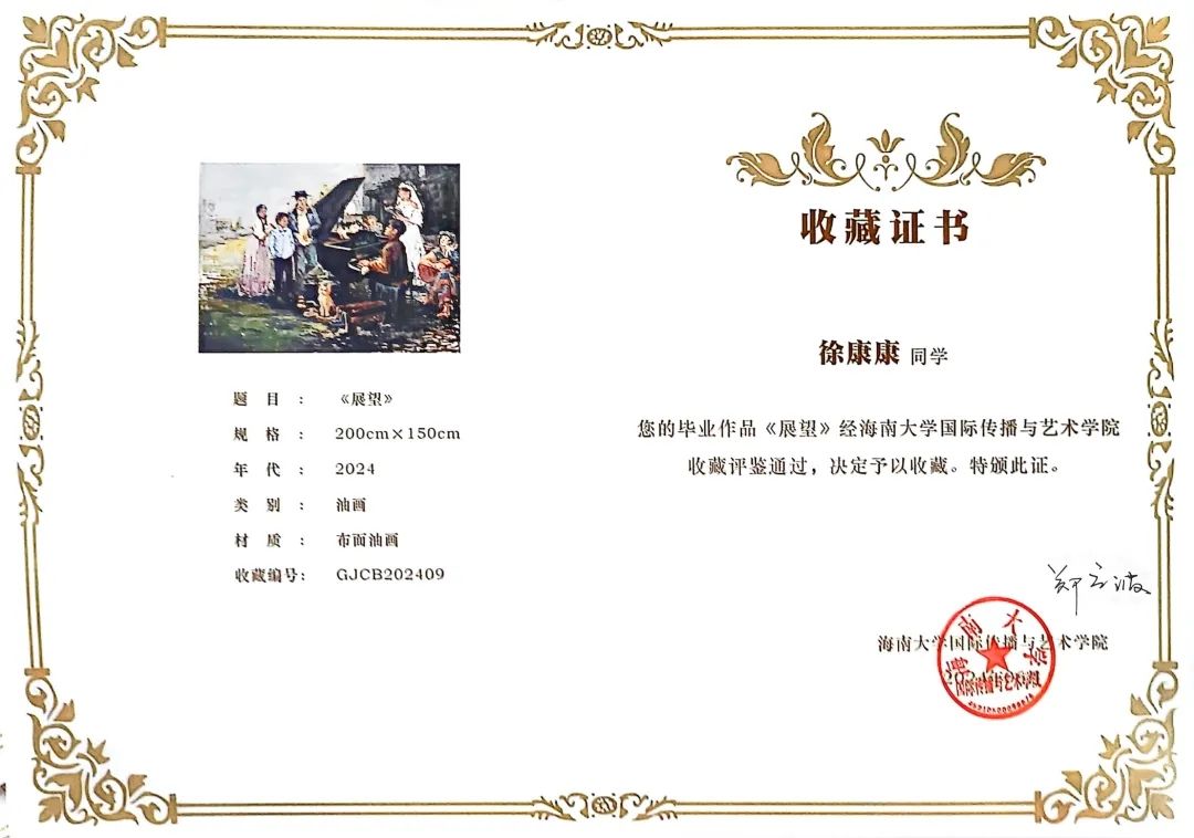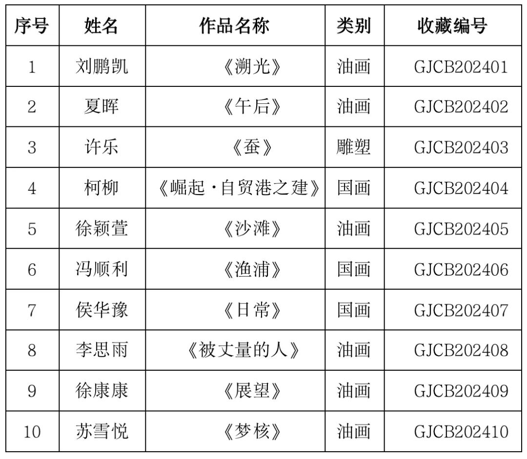 2024年6月14日,德赢Vwin官方区域合作伙伴2024届毕业生优秀美术作品收藏仪式在田家炳楼举行,有10件毕业作品被收藏,涵盖了油画、国画、雕塑等艺术门类。