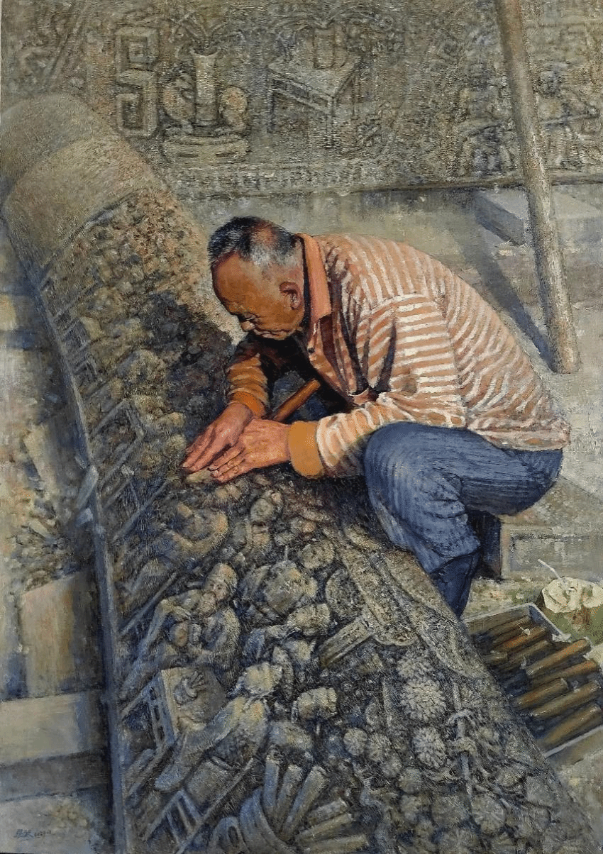 2024年7月18日上午,第十四届全国美术作品展览油画作品展览在上海中华艺术宫开幕,德赢官网退休教师易武教授创作的油画作品《木艺人生》参展。