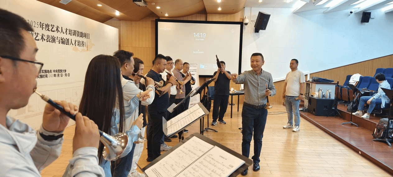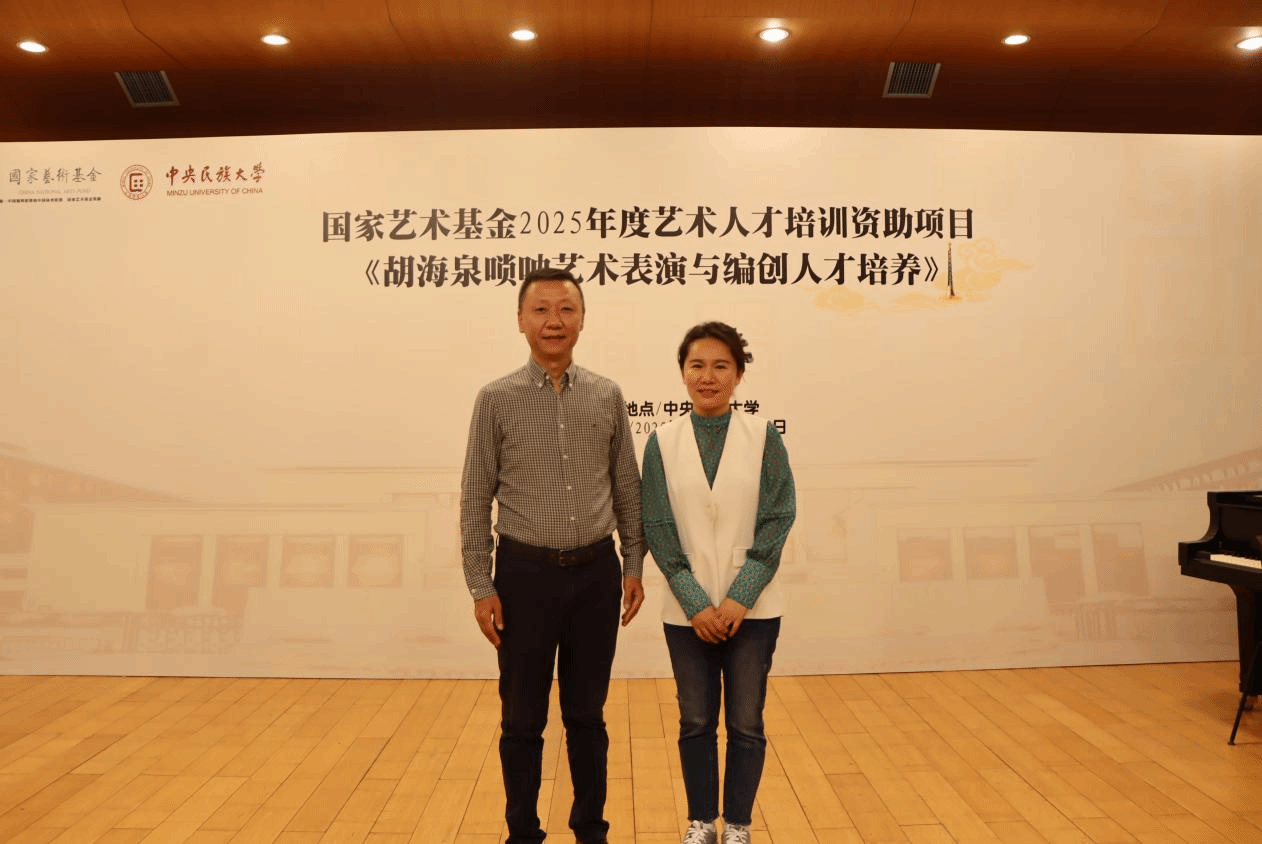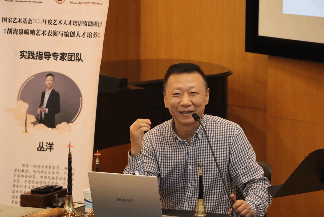 2025年5月23日,德赢官网音乐系丛洋副教授,受中央民族大学音乐学院胡美玲老师之邀,出席国家艺术基金2025年度艺术人才培训资助项目活动——《胡海泉唢呐艺术表演与编创人才培养》,为全国各省40多名优秀学员进行唢呐专家授课。