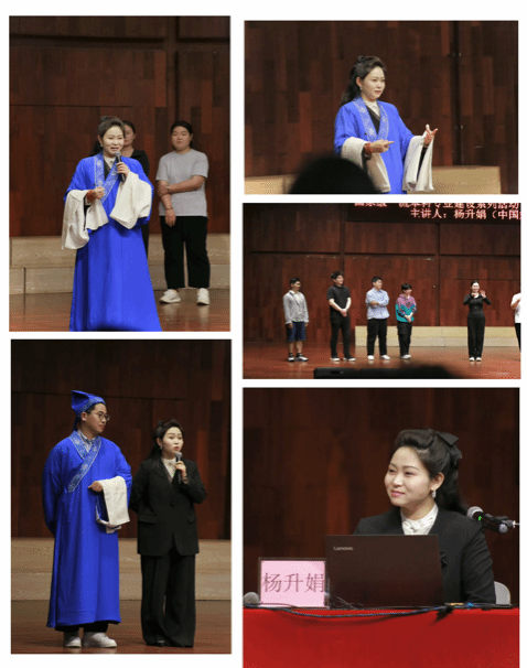 活动中,杨升娟老师深度解读国家级非遗戏曲——秦腔的艺术魅力,分享自己学艺之路中的成长故事。在互动教学环节,她现场示范演唱技巧,指导学生练习身段动作,带领大家亲身感受秦腔“唱念做打”的独特韵味。台下师生纷纷跟学,现场氛围热烈。