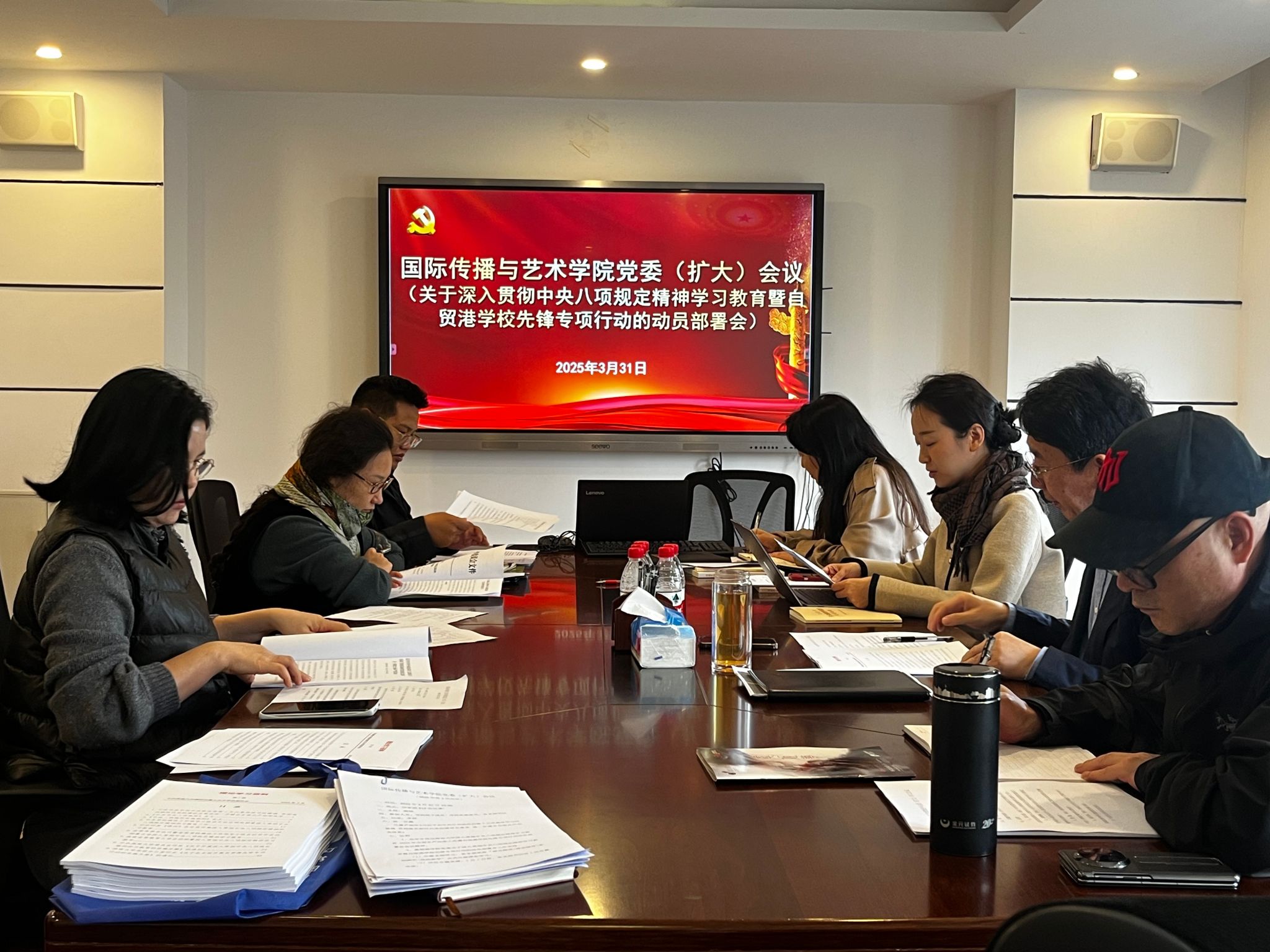2025年3月31日下午,德赢Vwin官方区域合作伙伴在田家炳楼412会议室召开党委(扩大)会议,对深入贯彻中央八项规定精神学习教育以及自贸港学校先锋专项行动展开动员部署。学院院领导、党委委员、党支部书记参加会议,会议由学院党委副书记蒋锐主持。